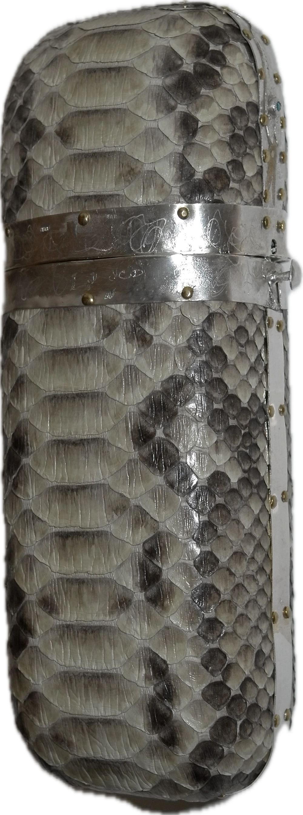 | body | outshell : Anaconda python leather interior : sheep skin leather hardware : hand crafted sterling silver |